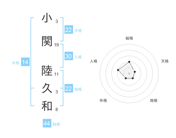 小関 陸久和さんを姓名の画数から五運を鑑定