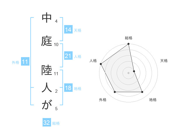 中庭 陸人がさんの外格は11画の4点!