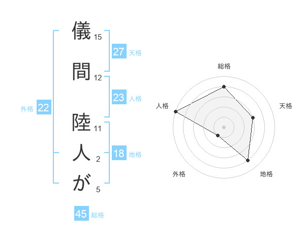 儀間 陸人がさんを姓名の画数から五運を鑑定