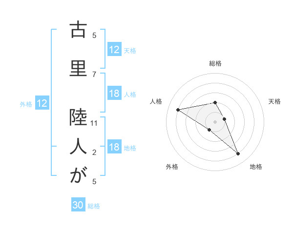 古里 陸人がさんの総格は30画の2点!