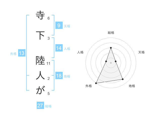 寺下 陸人がさんの外格は13画の5点!