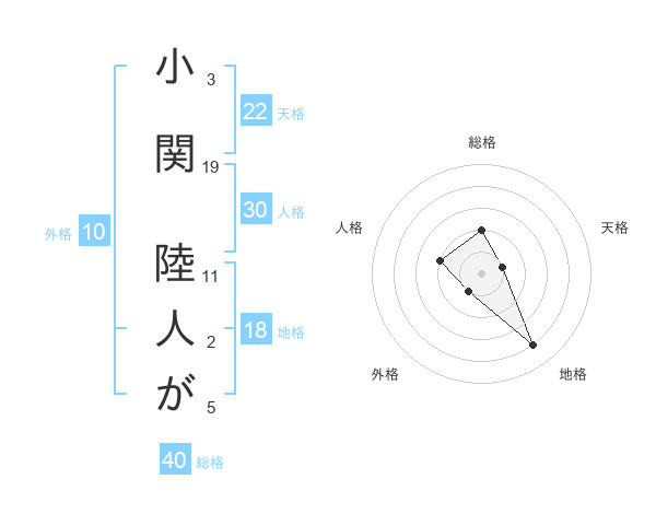 小関 陸人がさんの総格は40画の2点
