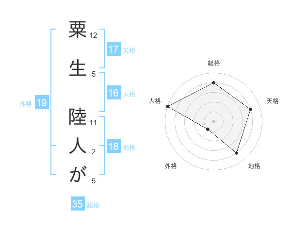 粟生 陸人がさんの天格は17画の4点!