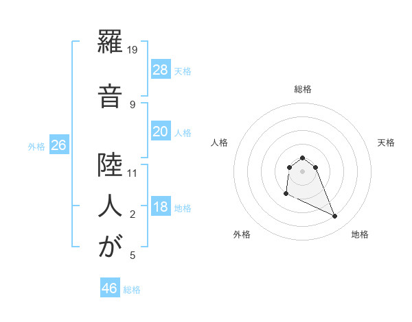 羅音 陸人がさんを姓名の画数から五運を鑑定