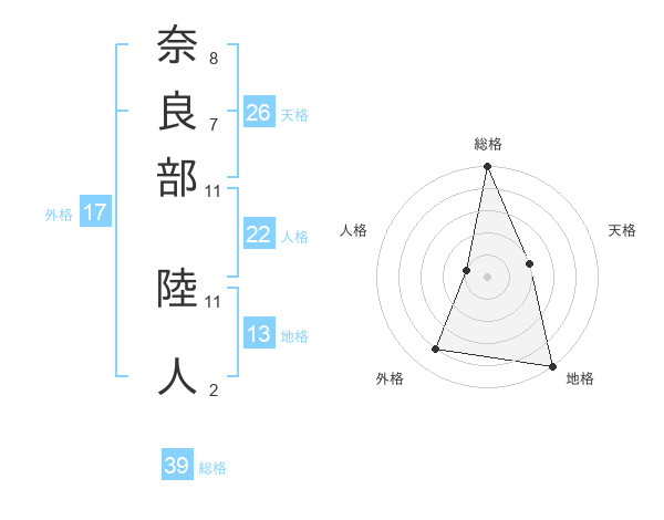 奈良部 陸人さんの総格は39画の5点!