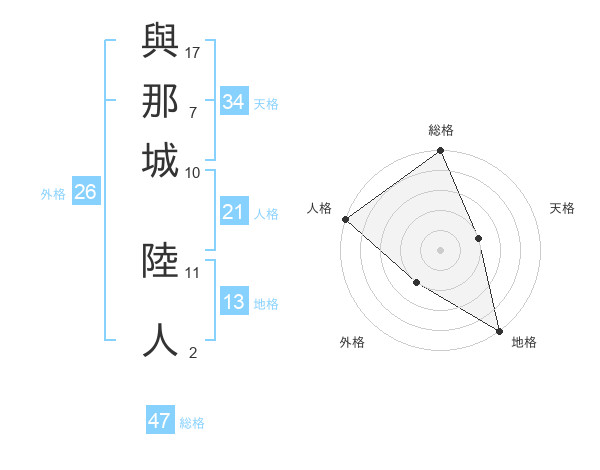 與那城 陸人さんの総格は47画の5点!