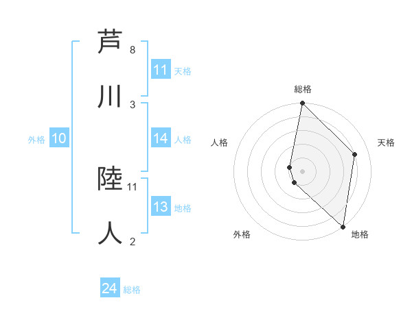 芦川 陸人さんの総格は24画の5点!