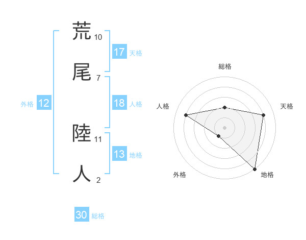荒尾 陸人さんの天格は17画の4点!