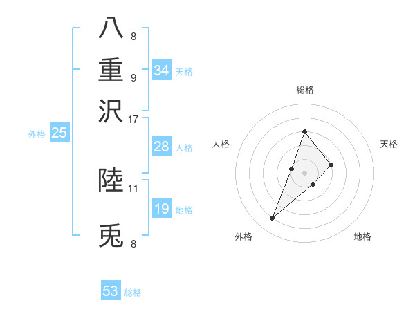 八重沢 陸兎さんを姓名の画数から五運を鑑定