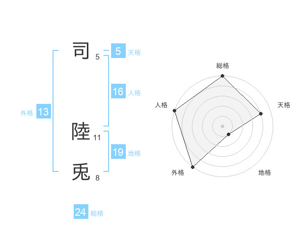 司 陸兎さんの外格は13画の5点!
