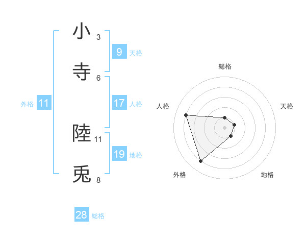 小寺 陸兎さんを姓名の画数から五運を鑑定
