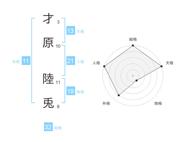 才原 陸兎さんを姓名の画数から五運を鑑定