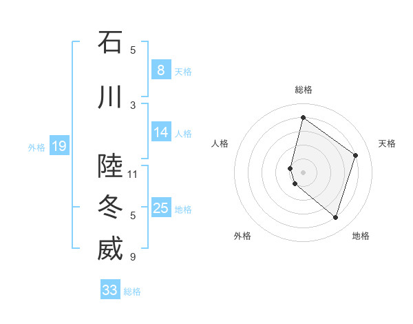 石川 陸冬威さんを姓名の画数から五運を鑑定