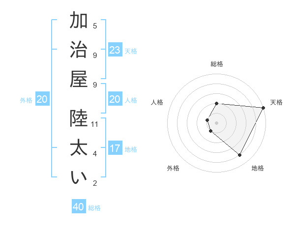 加治屋 陸太いさんを姓名の画数から五運を鑑定