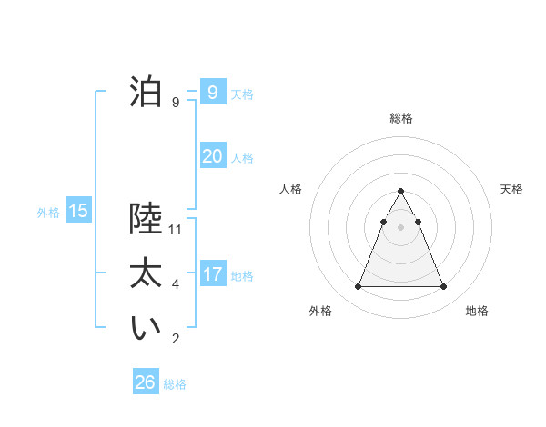 泊 陸太いさんを姓名の画数から五運を鑑定