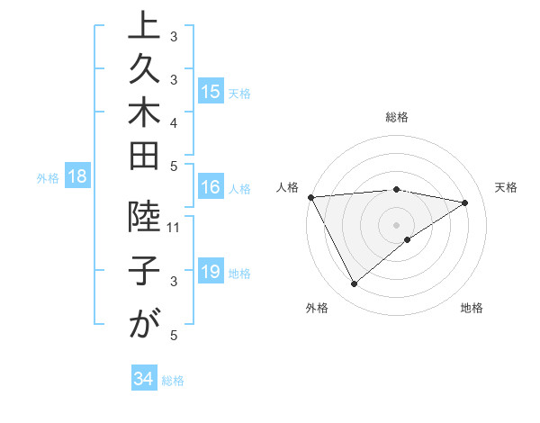 上久木田 陸子がさんを姓名の画数から五運を鑑定