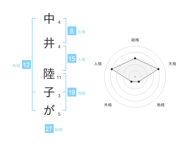 中井 陸子がさんを姓名の画数から五運を鑑定