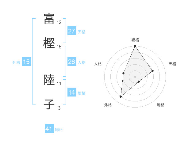 富樫 陸子さんを姓名の画数から五運を鑑定