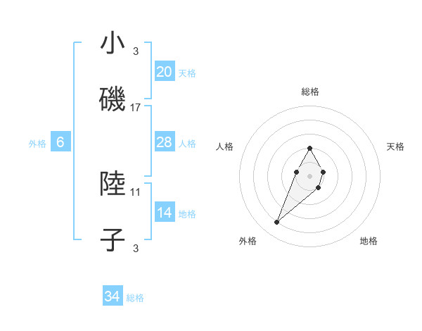 小磯 陸子さんの天格は20画の1点!
