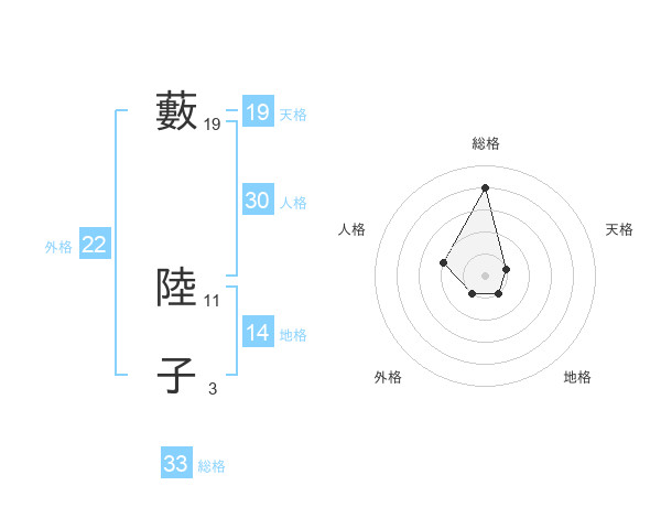 藪 陸子さんの総格は33画の4点!