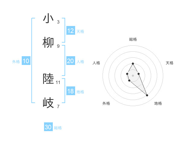 小柳 陸岐さんの総格は30画の2点!