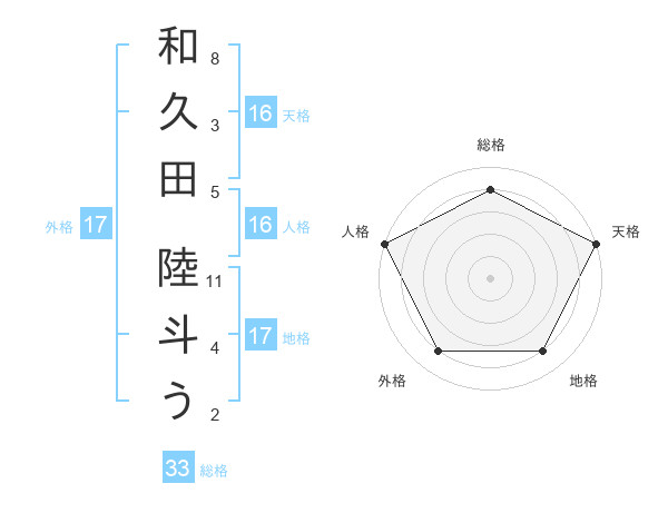 和久田 陸斗うさんを姓名の画数から五運を鑑定