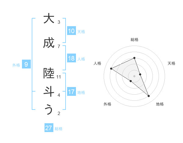 大成 陸斗うさんを姓名の画数から五運を鑑定