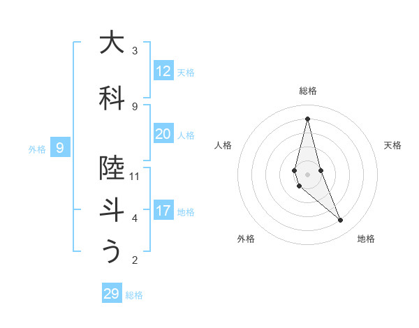 大科 陸斗うさんを姓名の画数から五運を鑑定