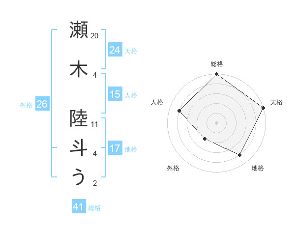 瀬木 陸斗うさんを姓名の画数から五運を鑑定