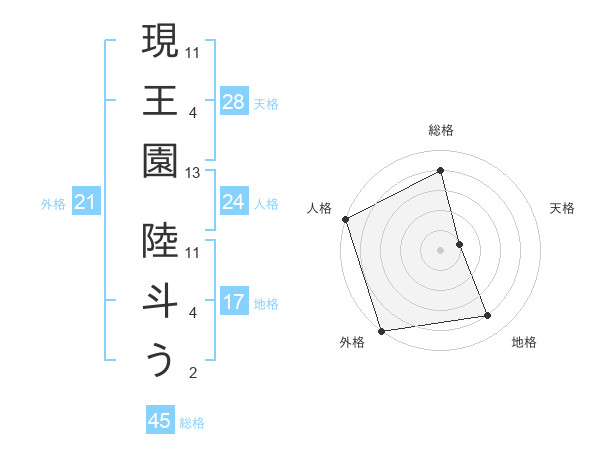 現王園 陸斗うさんを姓名の画数から五運を鑑定