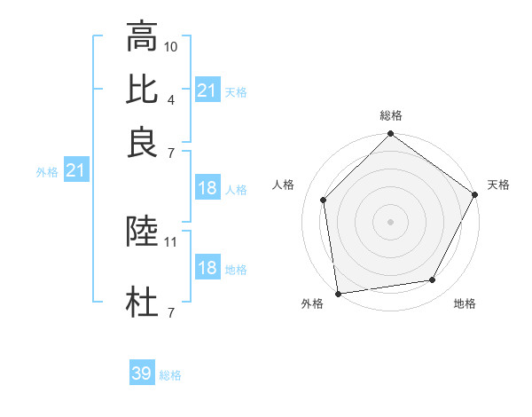 高比良 陸杜さんの天格は21画の5点!