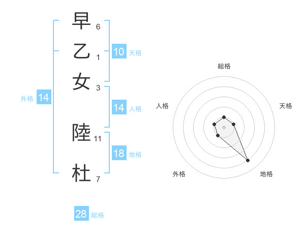 早乙女 陸杜さんを姓名の画数から五運を鑑定