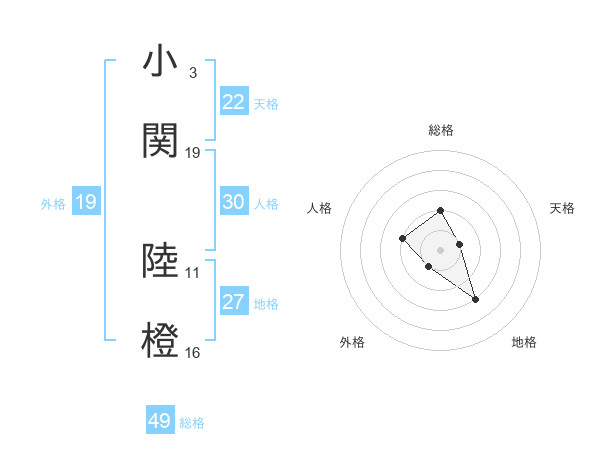 小関 陸橙さんの総格は49画の2点!