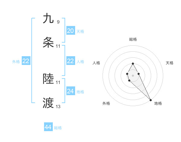 九条 陸渡さんを姓名の画数から五運を鑑定