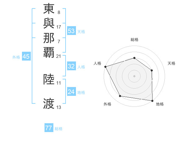 東與那覇 陸渡さんを姓名の画数から五運を鑑定