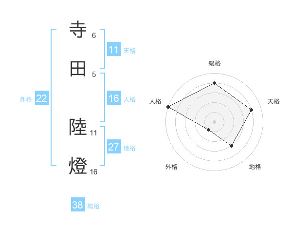 寺田 陸燈さんの総格は38画の4点!