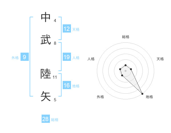 中武 陸矢さんを姓名の画数から五運を鑑定