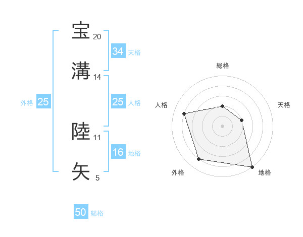 宝溝 陸矢さんを姓名の画数から五運を鑑定