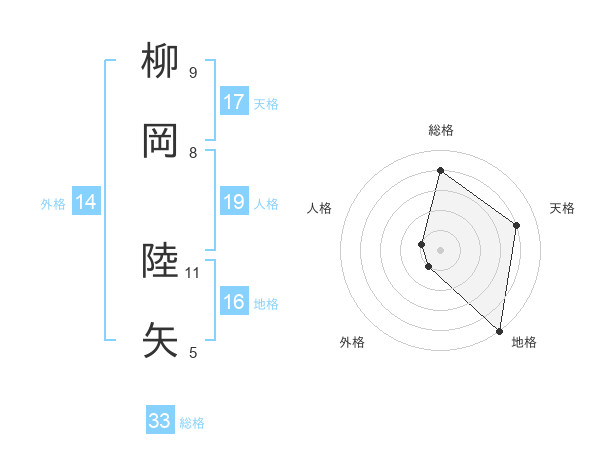 柳岡 陸矢さんの総格は33画の4点!