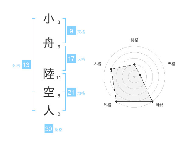 小舟 陸空人さんを姓名の画数から五運を鑑定