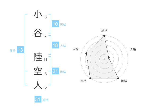 小谷 陸空人さんを姓名の画数から五運を鑑定