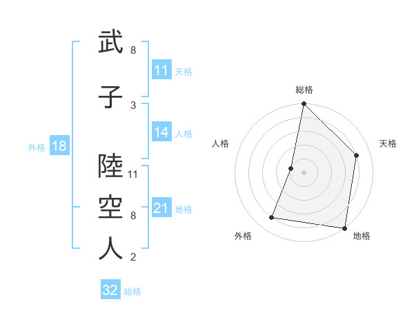 武子 陸空人さんの総格は32画の5点!