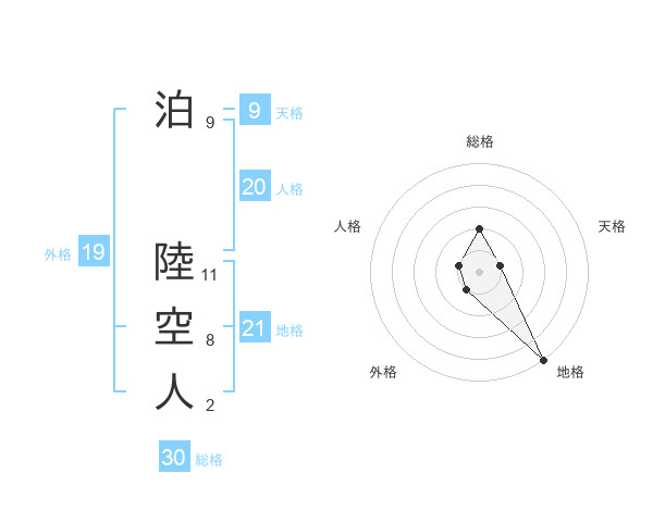 泊 陸空人さんの総格は30画の2点!