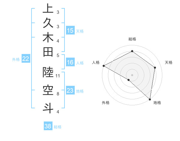 上久木田 陸空斗さんの総格は38画の4点!