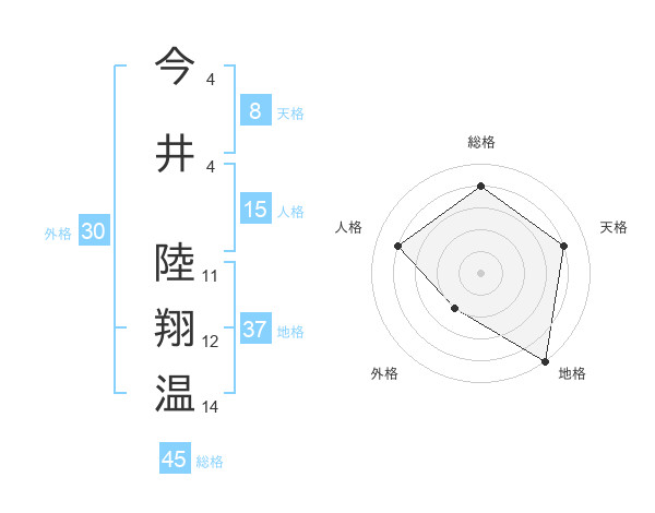 今井 陸翔温さんを姓名の画数から五運を鑑定