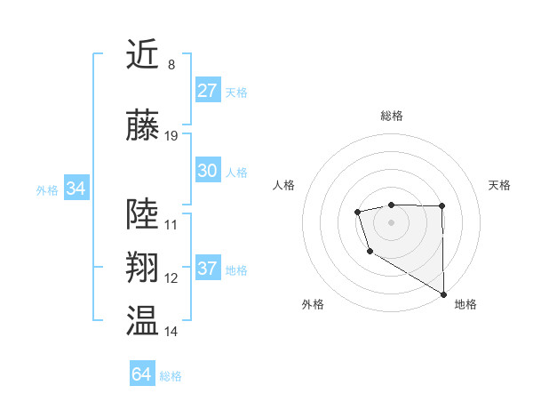 近藤 陸翔温さんを姓名の画数から五運を鑑定