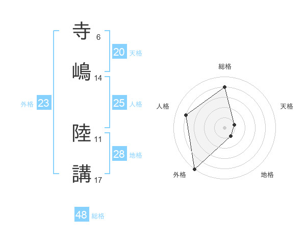 寺嶋 陸講さんを姓名の画数から五運を鑑定