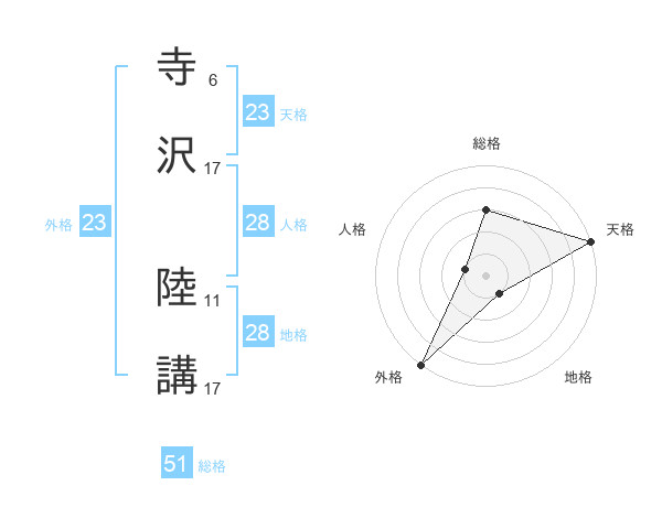 寺沢 陸講さんの総格は51画の3点!