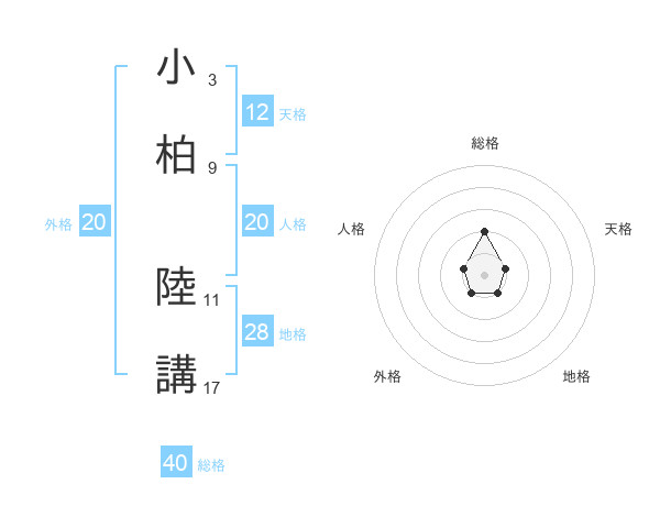 小柏 陸講さんの天格は12画の1点!