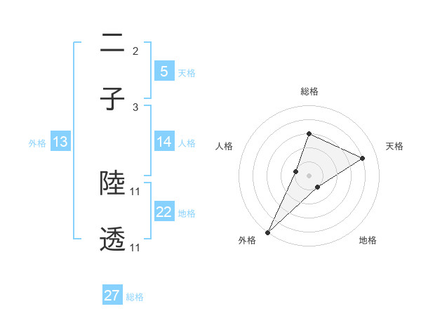 家系が持つ宿命的な運勢を表します。祖先から受け継いだ苗字ですので自分の力が及びません。家柄を象徴します。